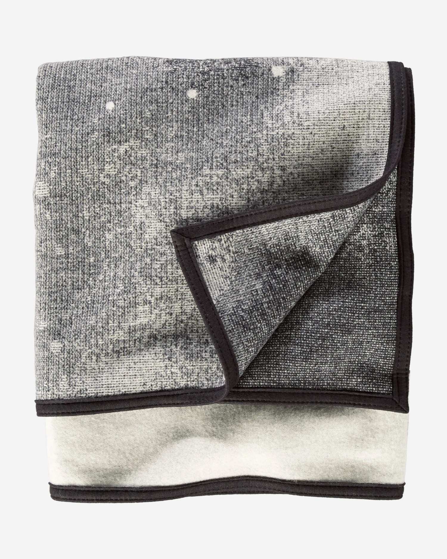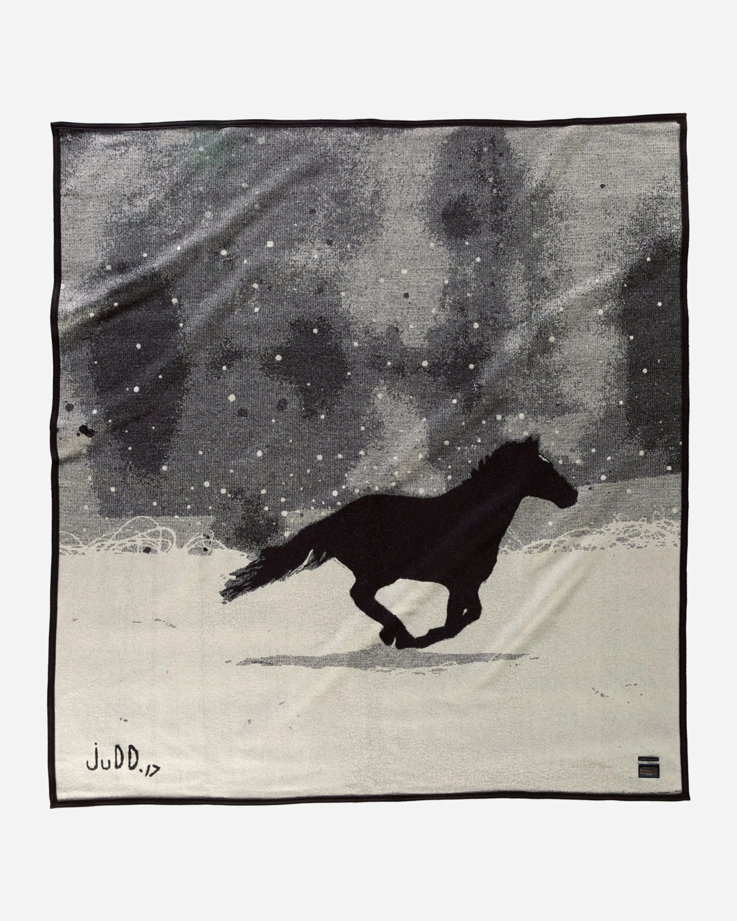 A painting by Montana artist Judd Thompson comes to life on a made-in-USA wool blanket. This original design depicts a dream-like scene, with the silhouette of a horse running though a snow-covered field. It’s a stunning décor piece, whether draped over a sofa or displayed on a wall.