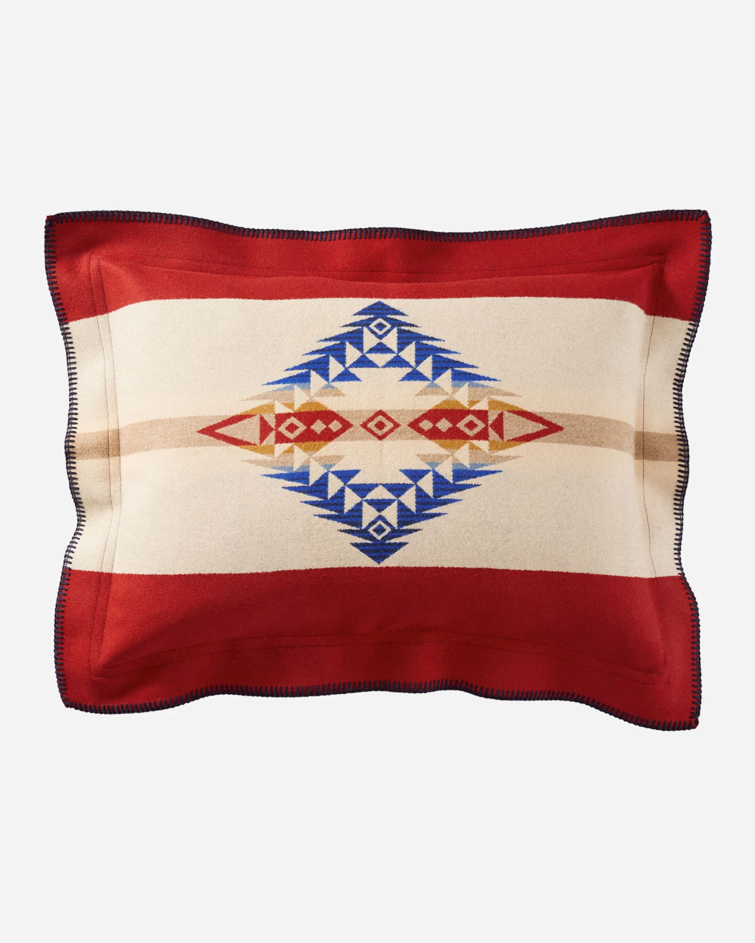 A USA-made wool sham in a pattern inspired by Colorado’s Alta Lakes. Pairs beautifully with our matching blanket (item 74245). Reverses for two different looks.