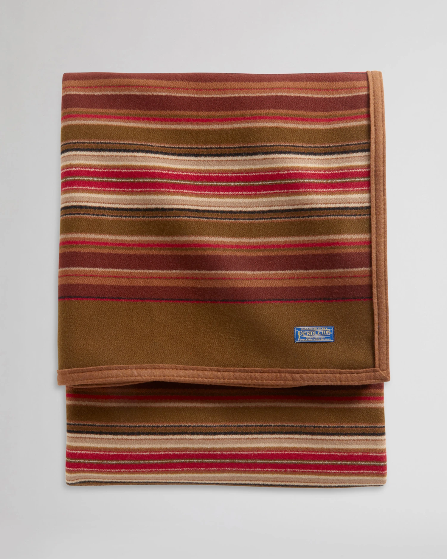 In expert hands, wool takes dye like no other fiber, creating permanently rich color you’ll admire for years. These energetic, vibrant stripes are inspired by the celebrated serape patterns of Saltillo, Mexico, and woven in our Pacific Northwest mills. A lighter weight makes these blankets just right for late summer and early fall.