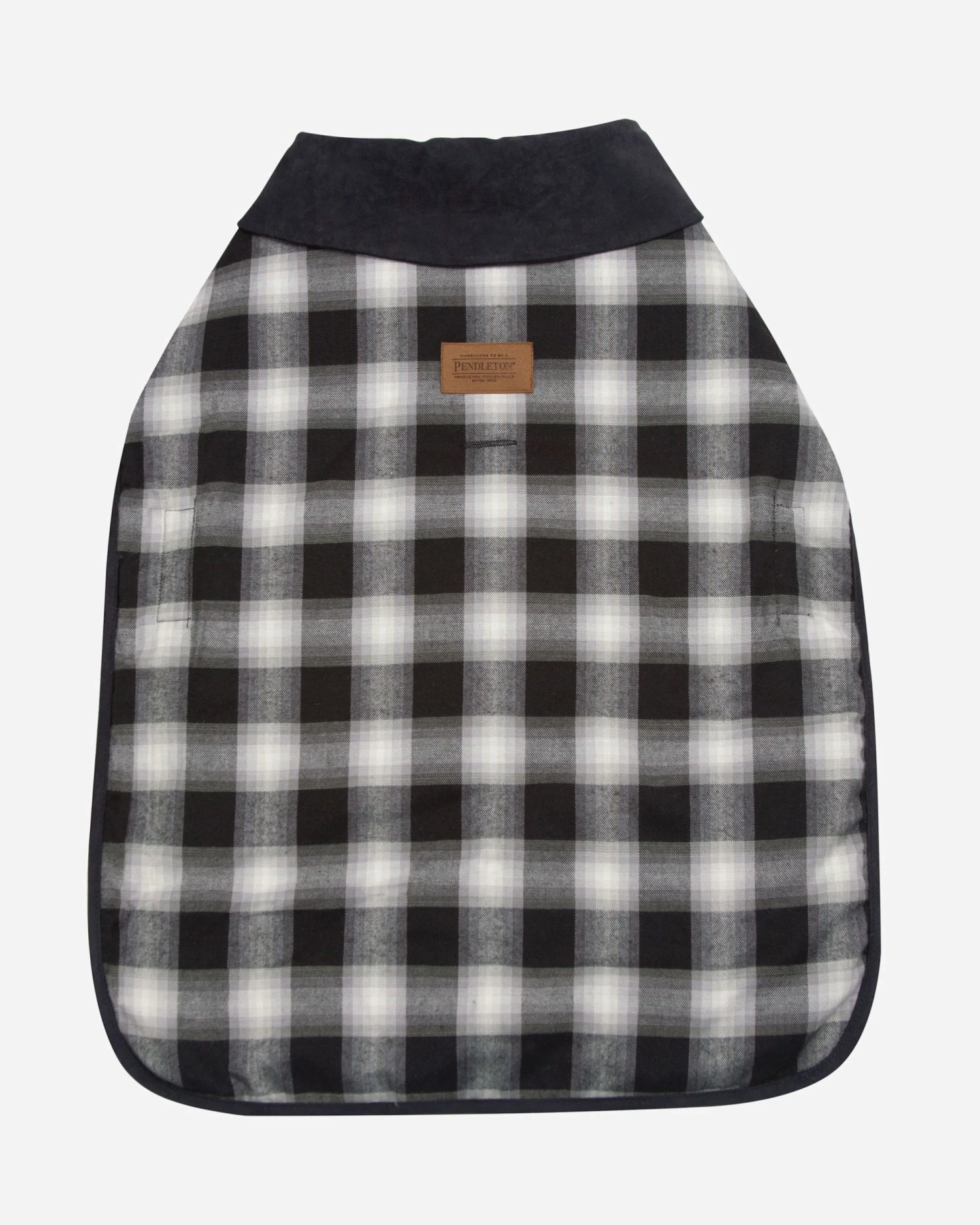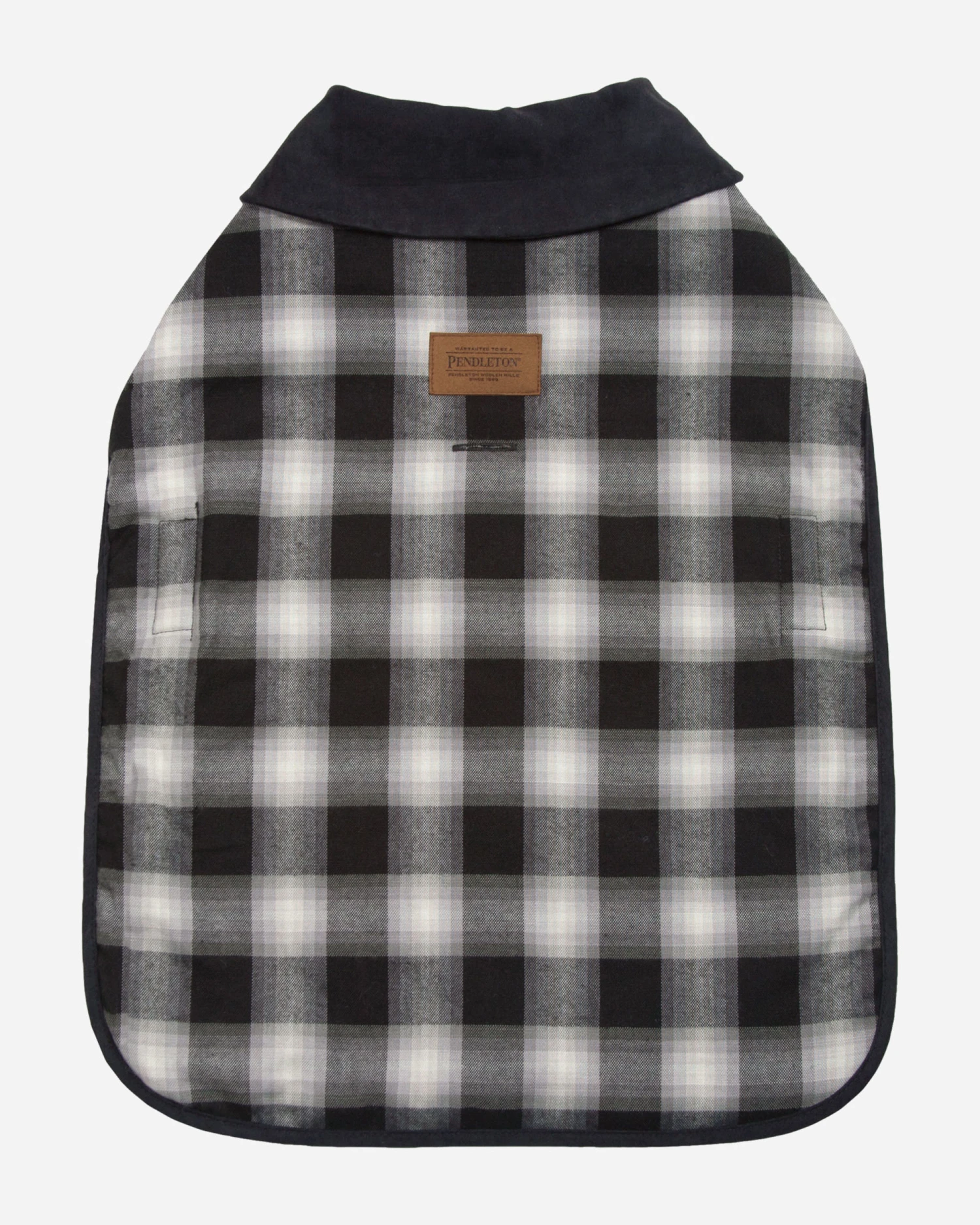 Our warm plaid dog coat reverses to quilted faux suede. Easy on-and-off with adjustable wrap belt for a custom fit. Measure length from base of neck to base of tail.
