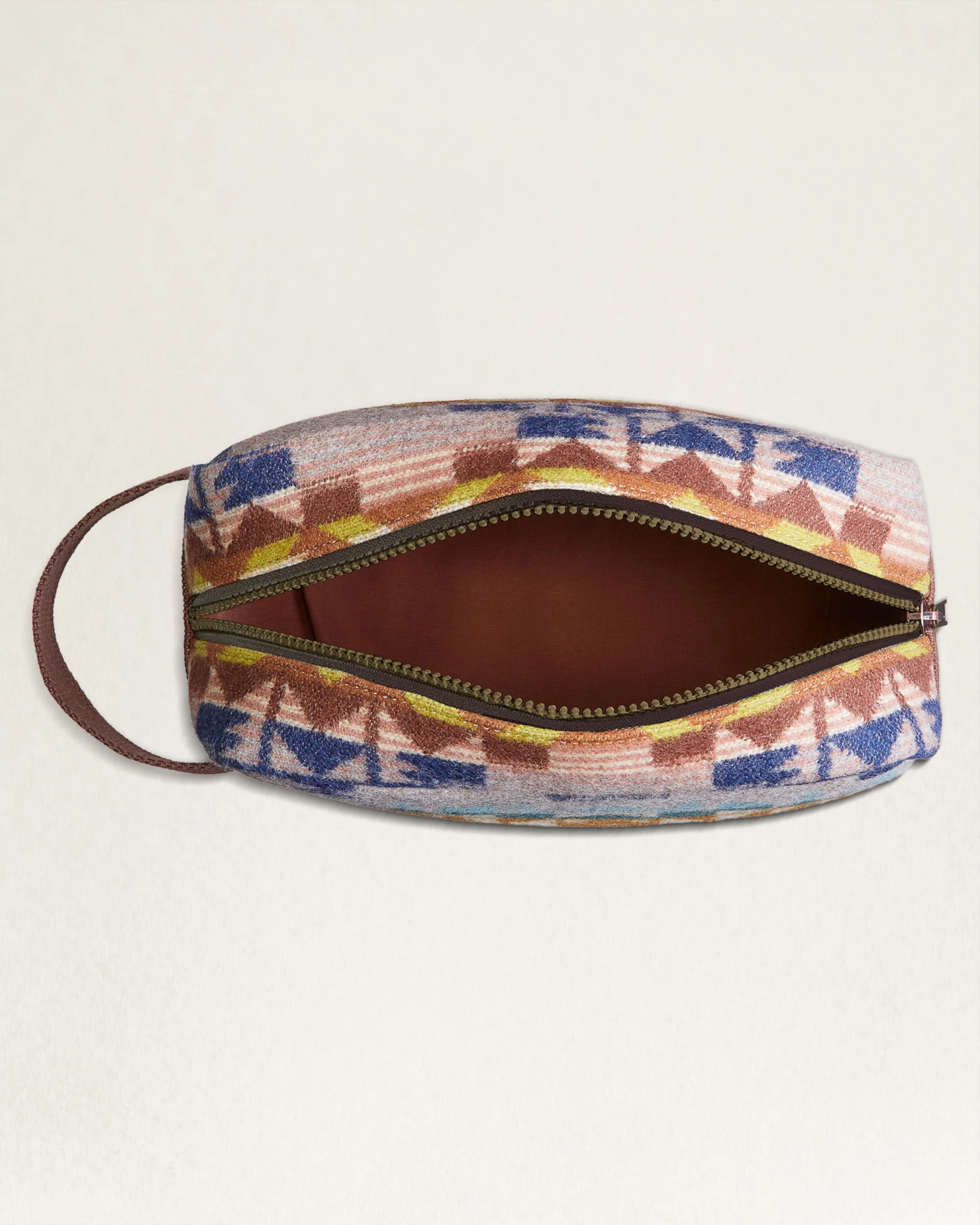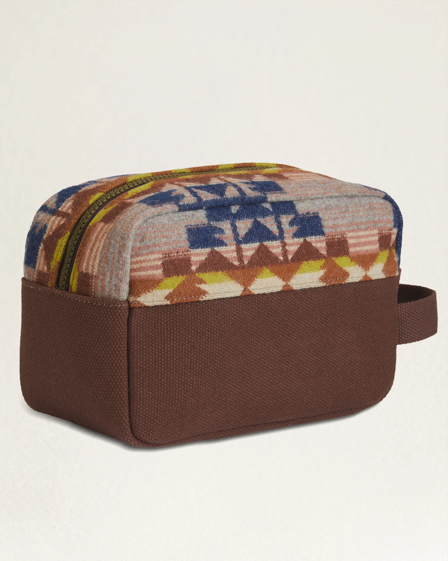 This handy pouch is perfectly sized for toiletries, shaving gear and cosmetics. Crafted from cotton canvas woven in-USA wool jacquard fabric, it features a zipper closure, exterior zip pocket, padded base and side grab handle. Pattern placement may vary.