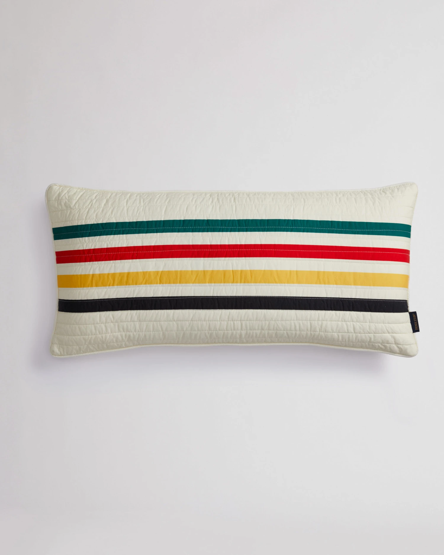 A quilted cotton pillow featuring our popular Glacier Park stripes on front, with a solid color back. Removable insert.