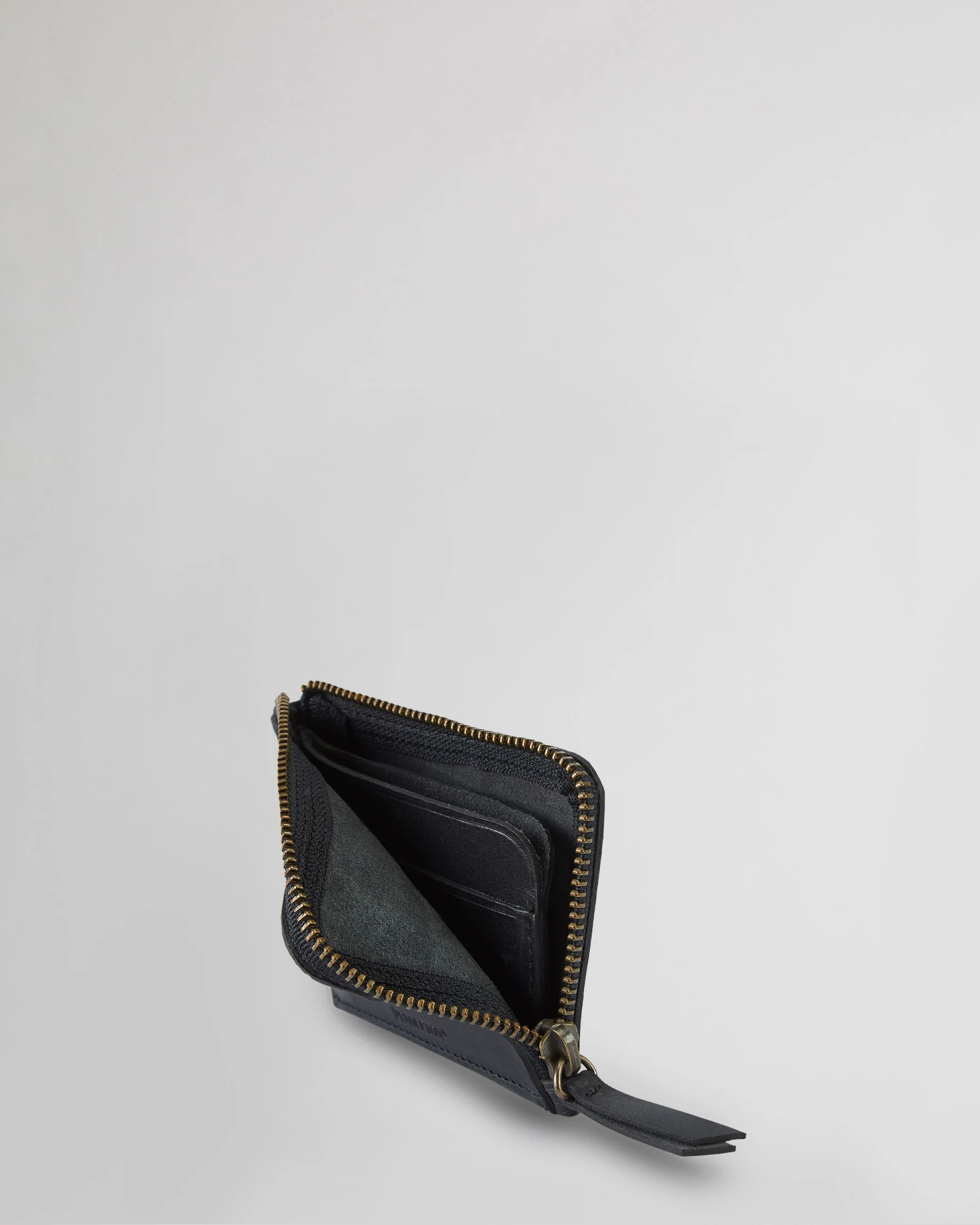 Zip-close wallet has an embossed pattern on front, with multiple card slots inside. Lined.