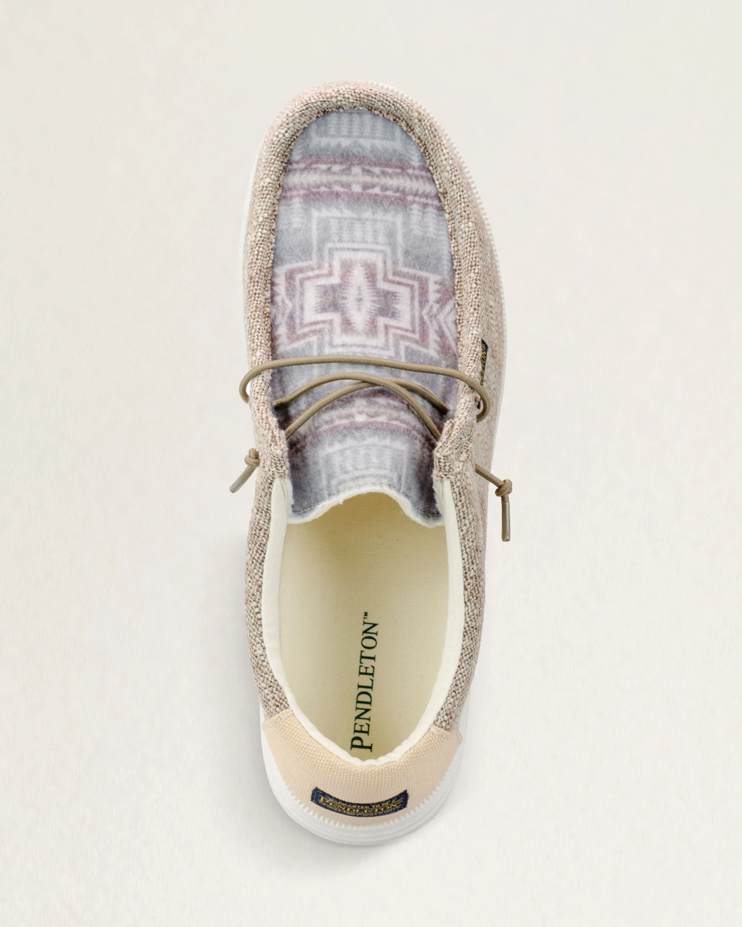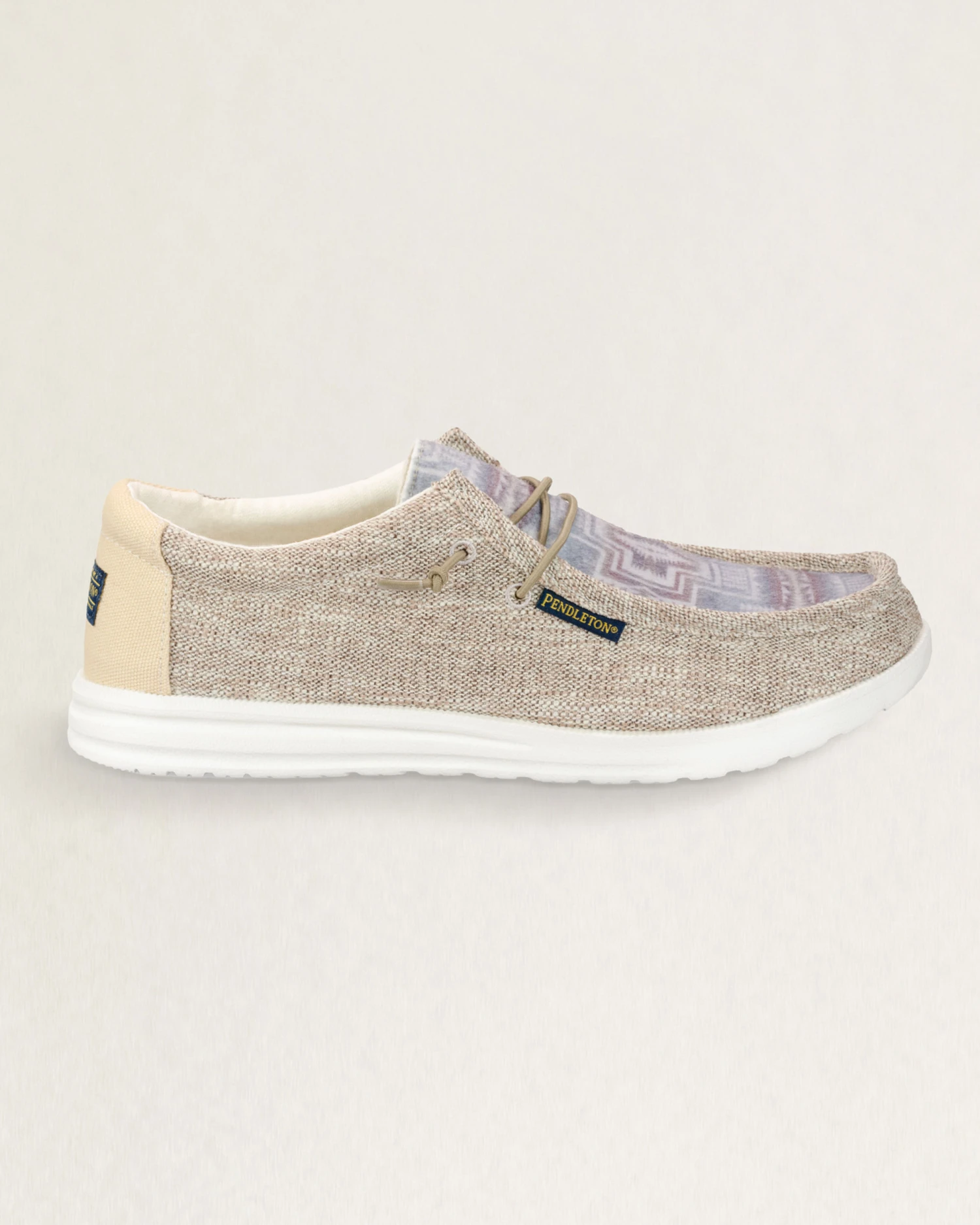 A stylish men’s slip-on boat shoe featuring breathable cotton and wool upper with elastic no-tie laces for lasting comfort.