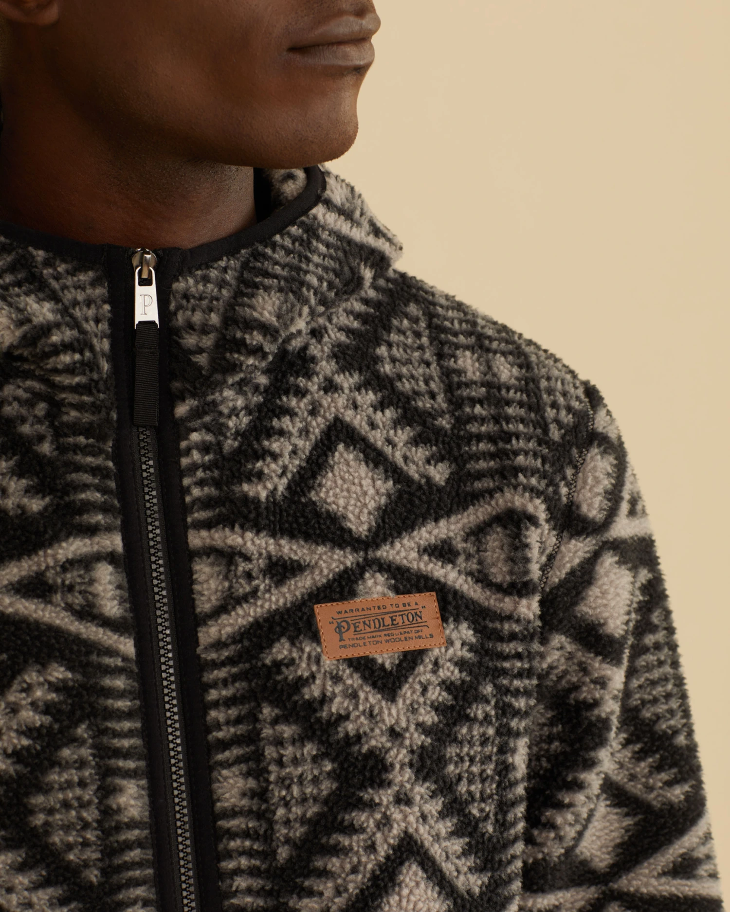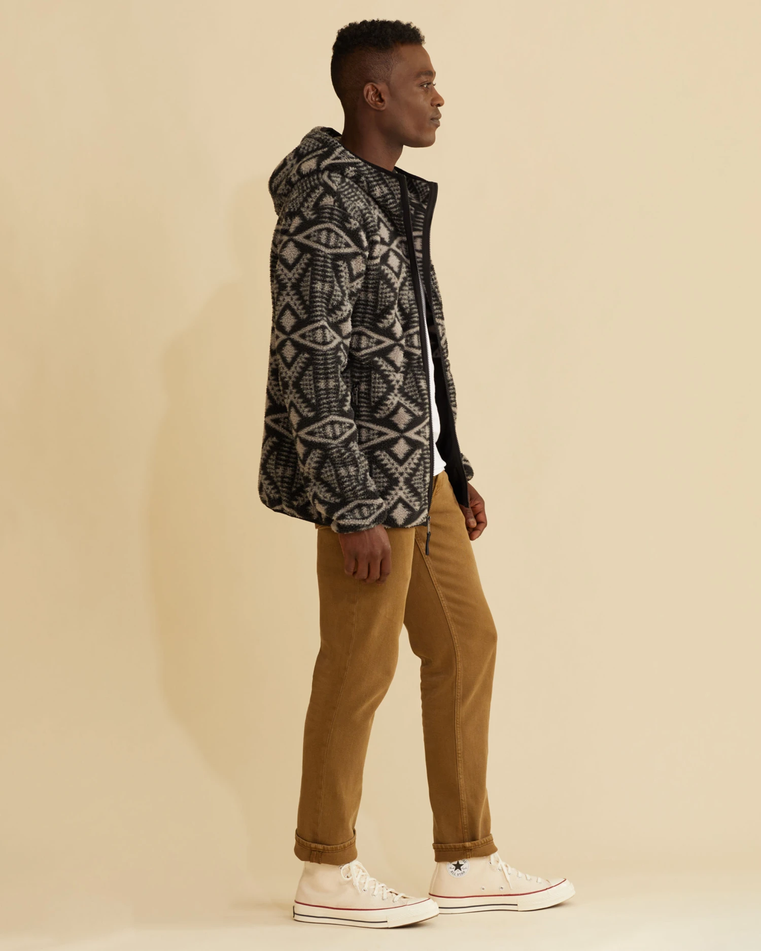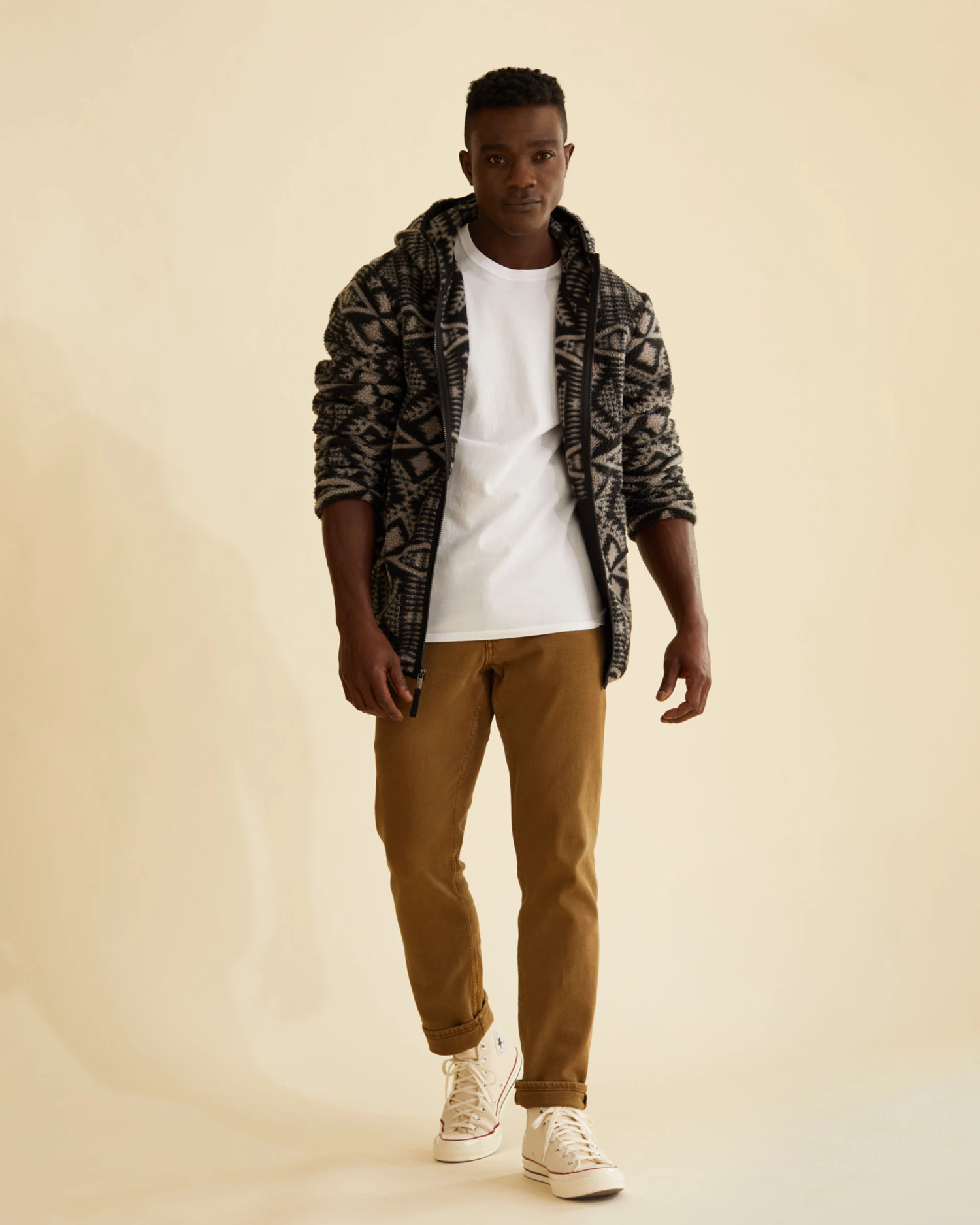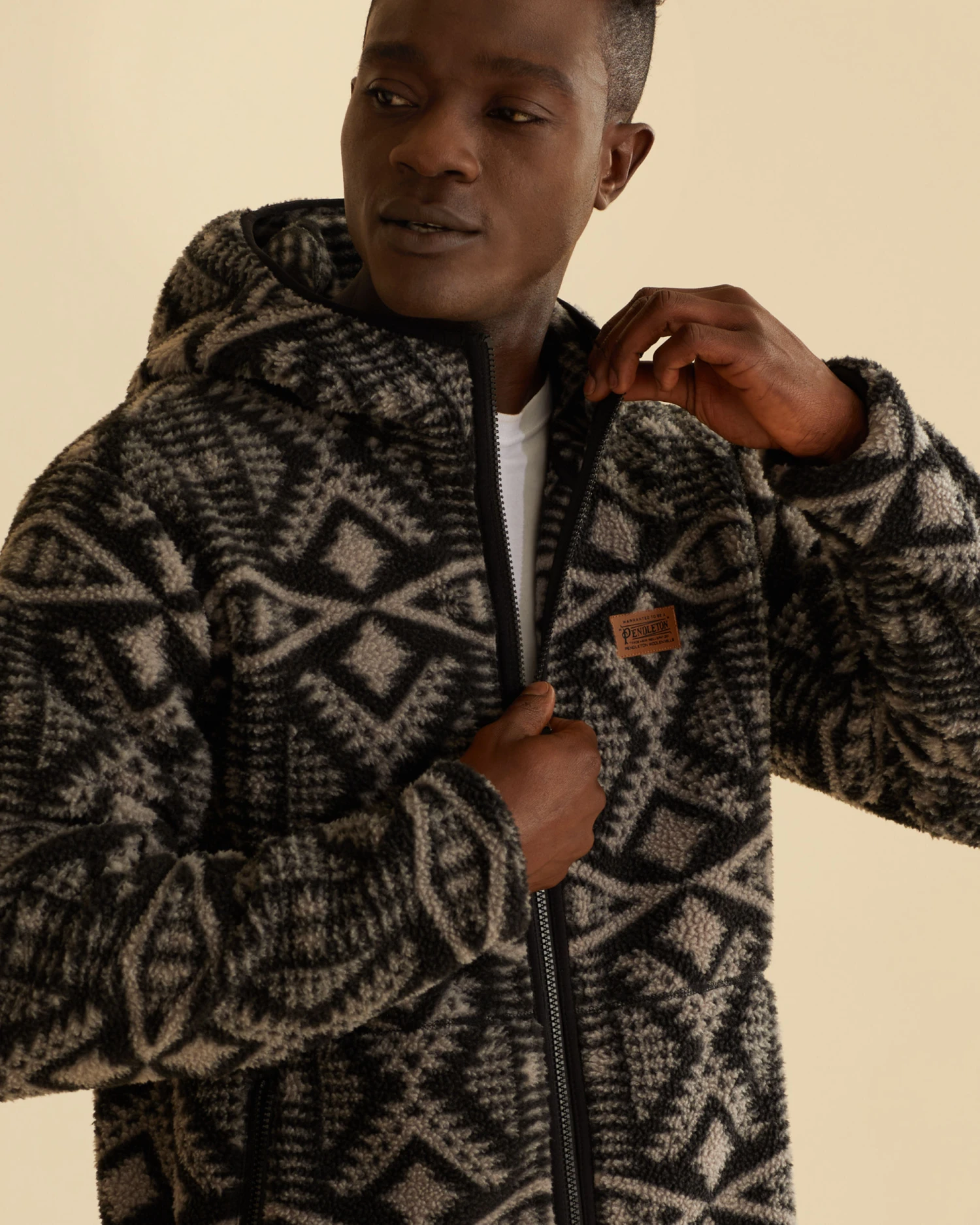 A cozy fleece hoodie in our exclusive Diamond River pattern, with a zip front and two zip-close pockets. Comfortably cut for easy layering.