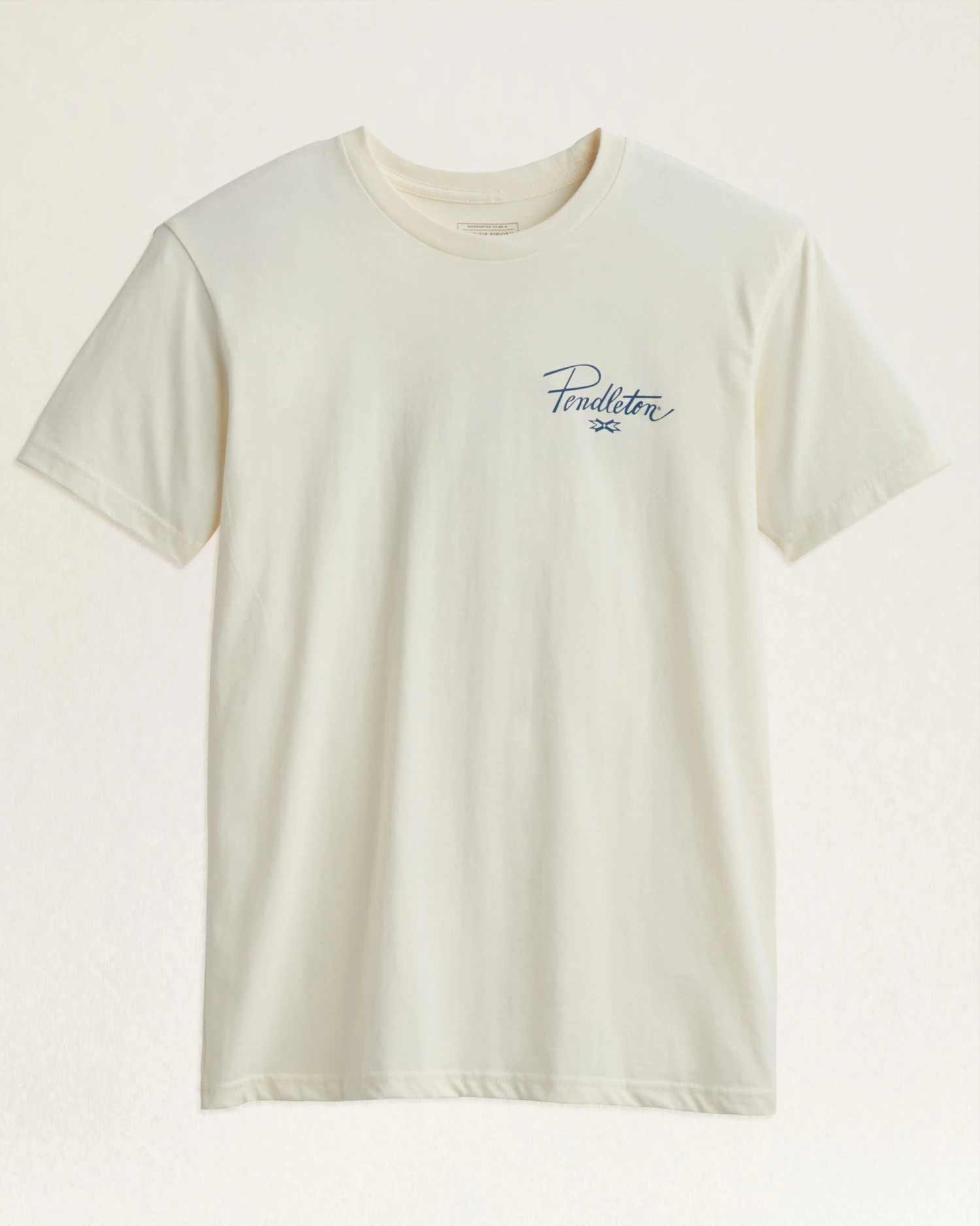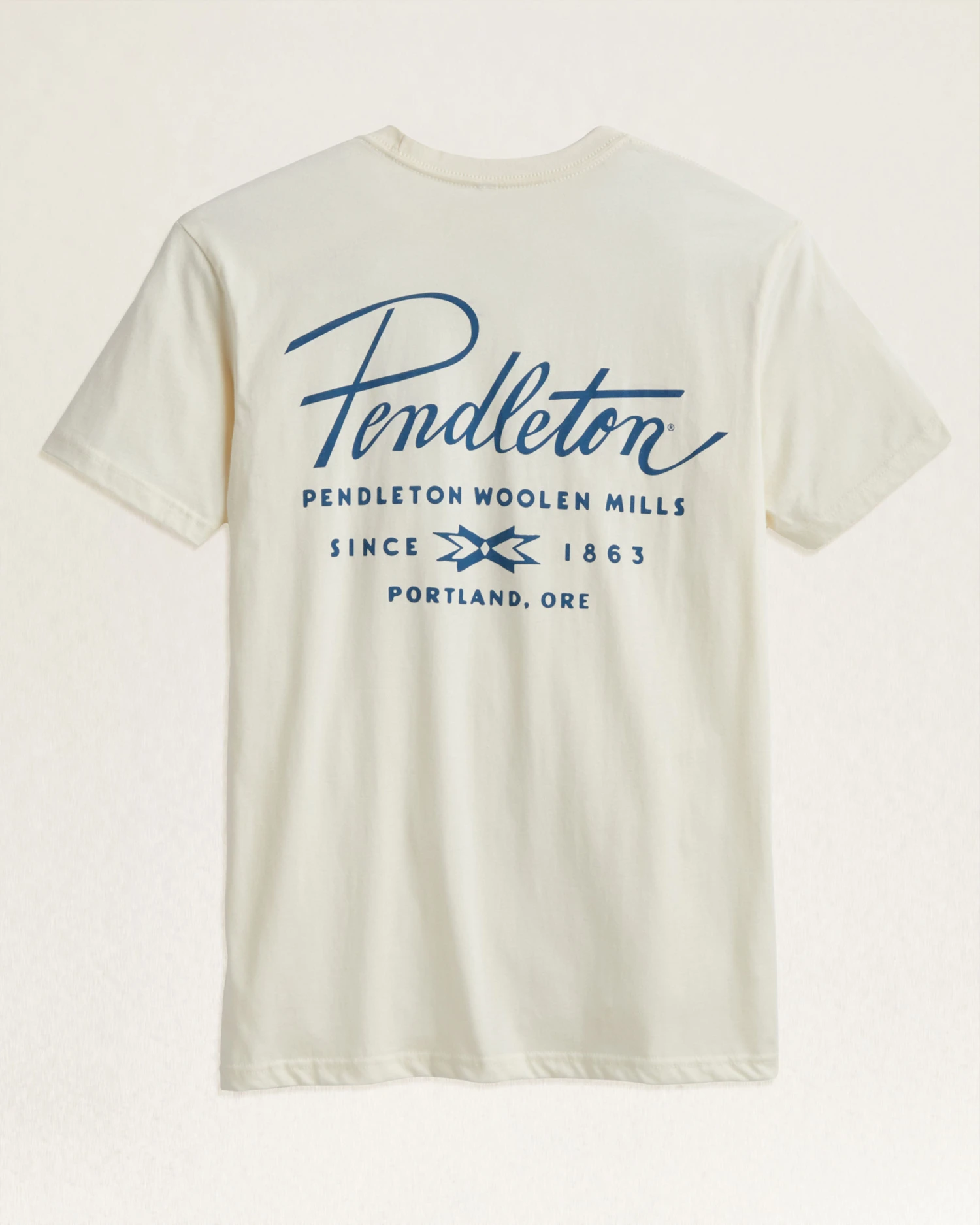 Soft, ring-combed brushed cotton tee features an antique version of the Pendleton logo on back, with a small logo on front left chest.