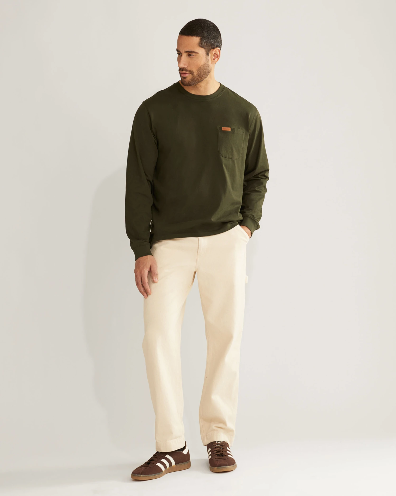 Our famous long-sleeve men’s t-shirt of premium combed cotton in a hardy jersey knit. A reinforced pocket and double-needle stitching add staying power. Label-free neck.