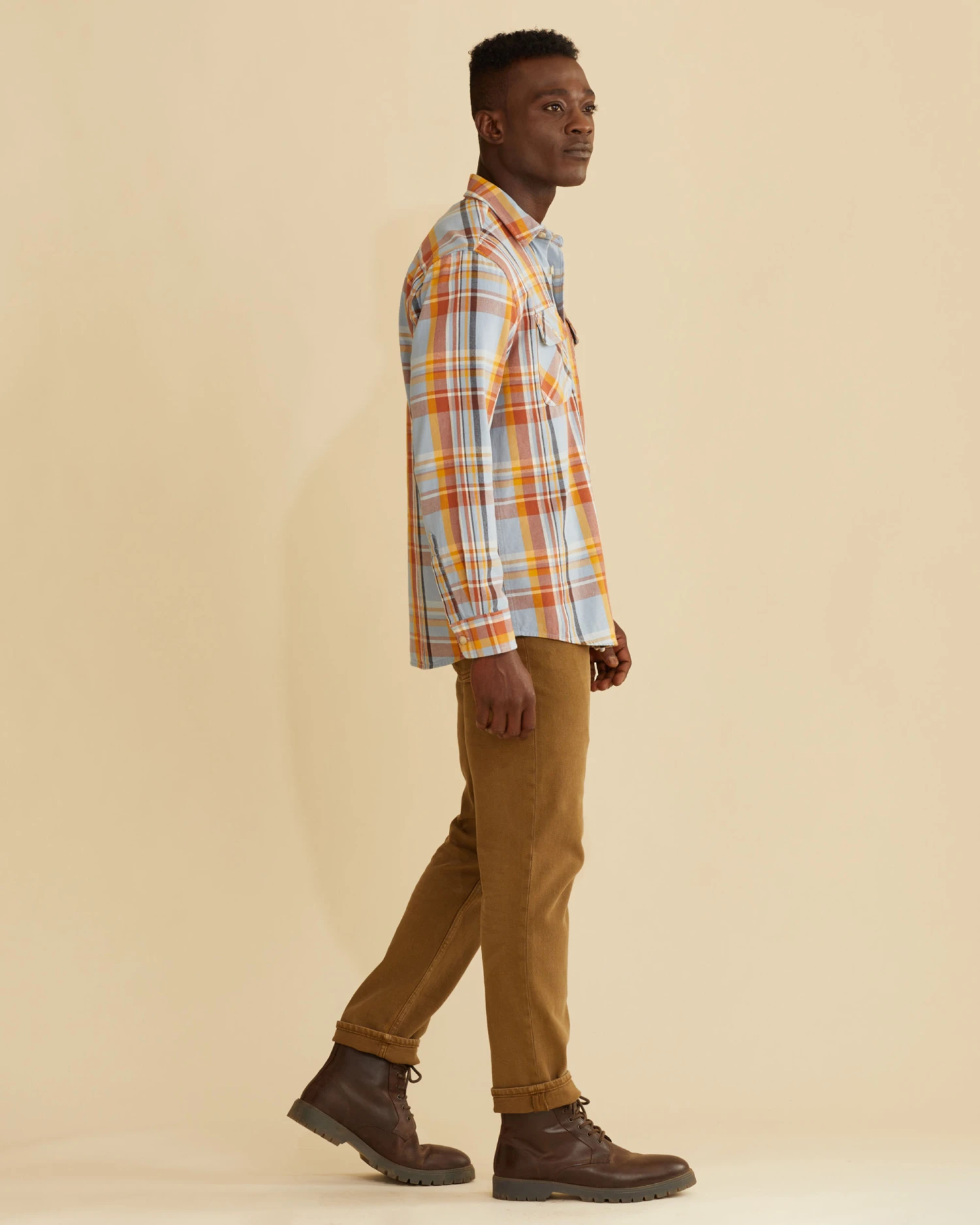 Our most popular men’s cotton shirt, in refreshed plaids. Crafted from soft cotton that’s washed for extra comfort, with two bias-cut chest pockets and shirttail hem.