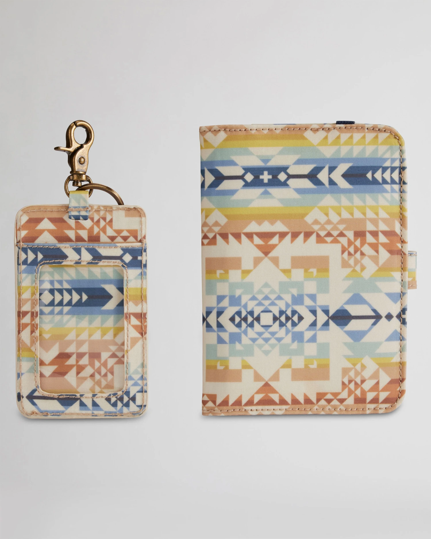 A two-piece set in a perfectly packed gift box featuring a matching passport case and luggage tag. Passport case features snap closure, exterior zip pocket, multiple interior card slots, ID window and elastic holder. Luggage tag equipped with ID window, top clasp and key ring.