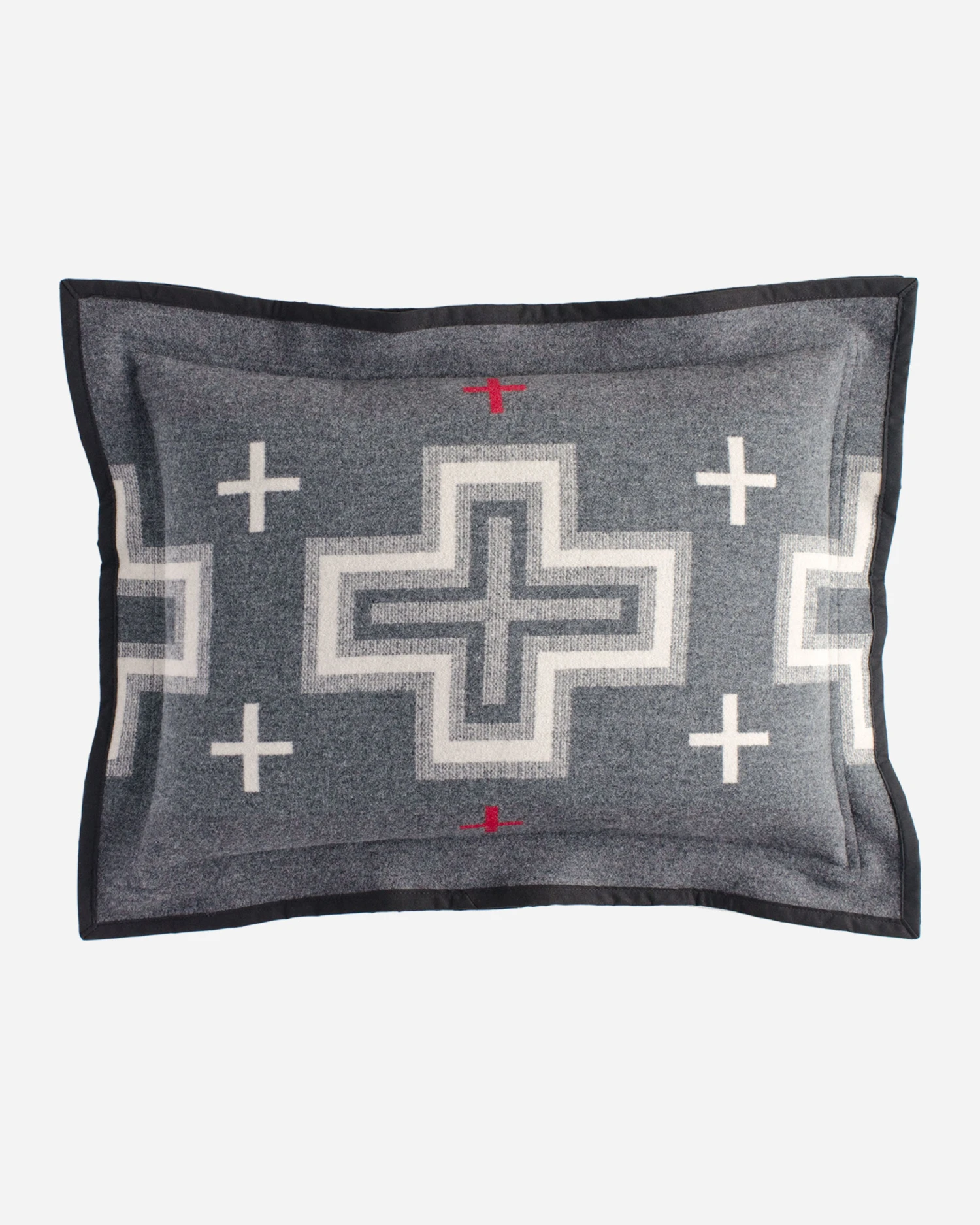 A pattern inspired by mid- to late-19th century Native American weaving traditions and the influence of Spanish missionaries in the Southwest. The design’s roots are in the traditional banded Chief Stripe pattern which evolved into a “nine-element” layout. The reversible jacquard has two dramatically different looks. Pair with our matching blanket (item 70512).