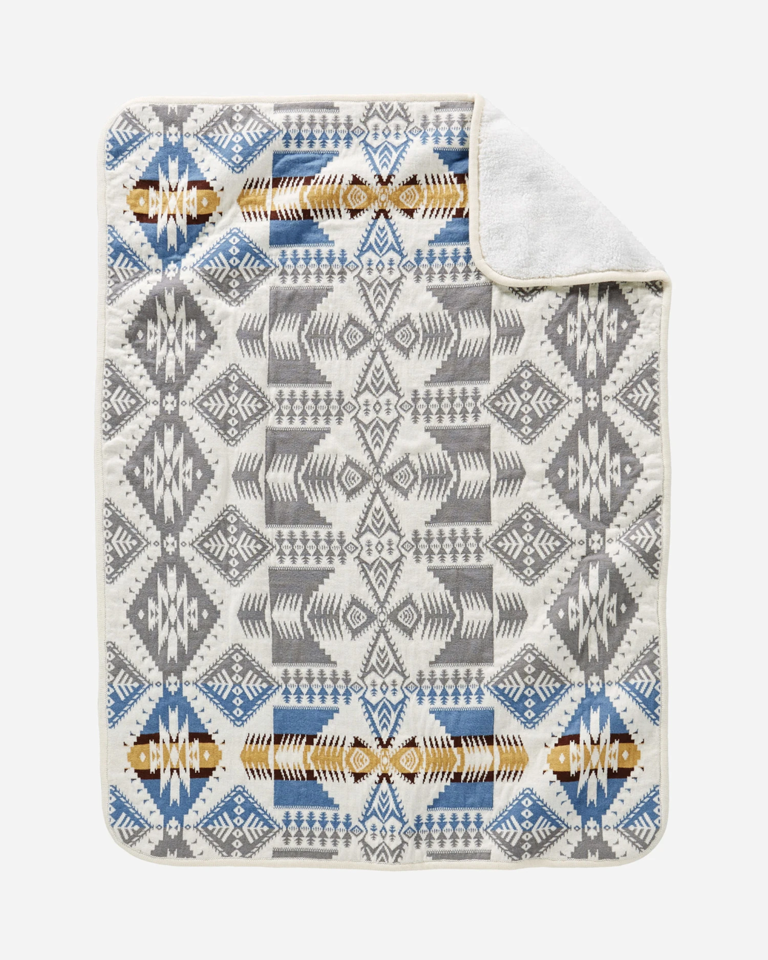 A soft and fuzzy baby blanket that’s perfectly sized for stroller, crib or car seat. Cozy cotton knit on one side, plush faux-sherpa fleece on the other.