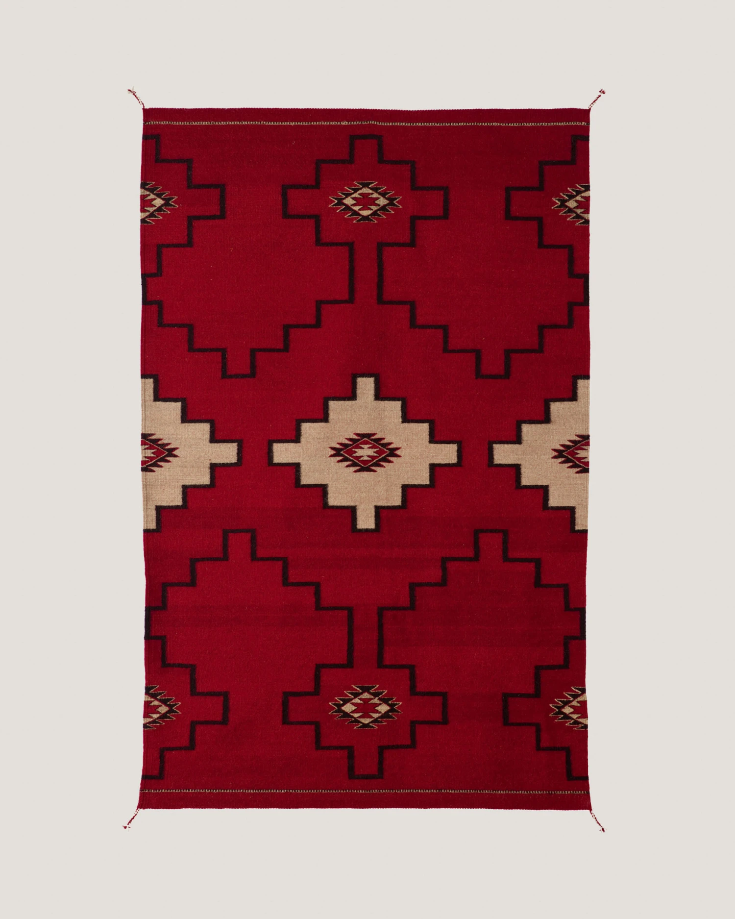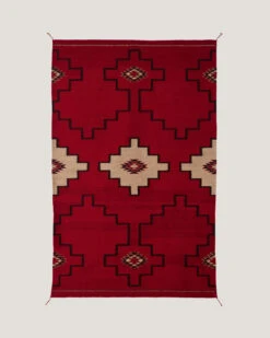 Inspired by a traditional pattern and hand-dyed, loomed and woven by Zapotec artisans in Oaxaca, Mexico. Pure wool from the Lincoln longwool sheep gives a silky feel and luminous color. Neat edges with a braid at each corner.