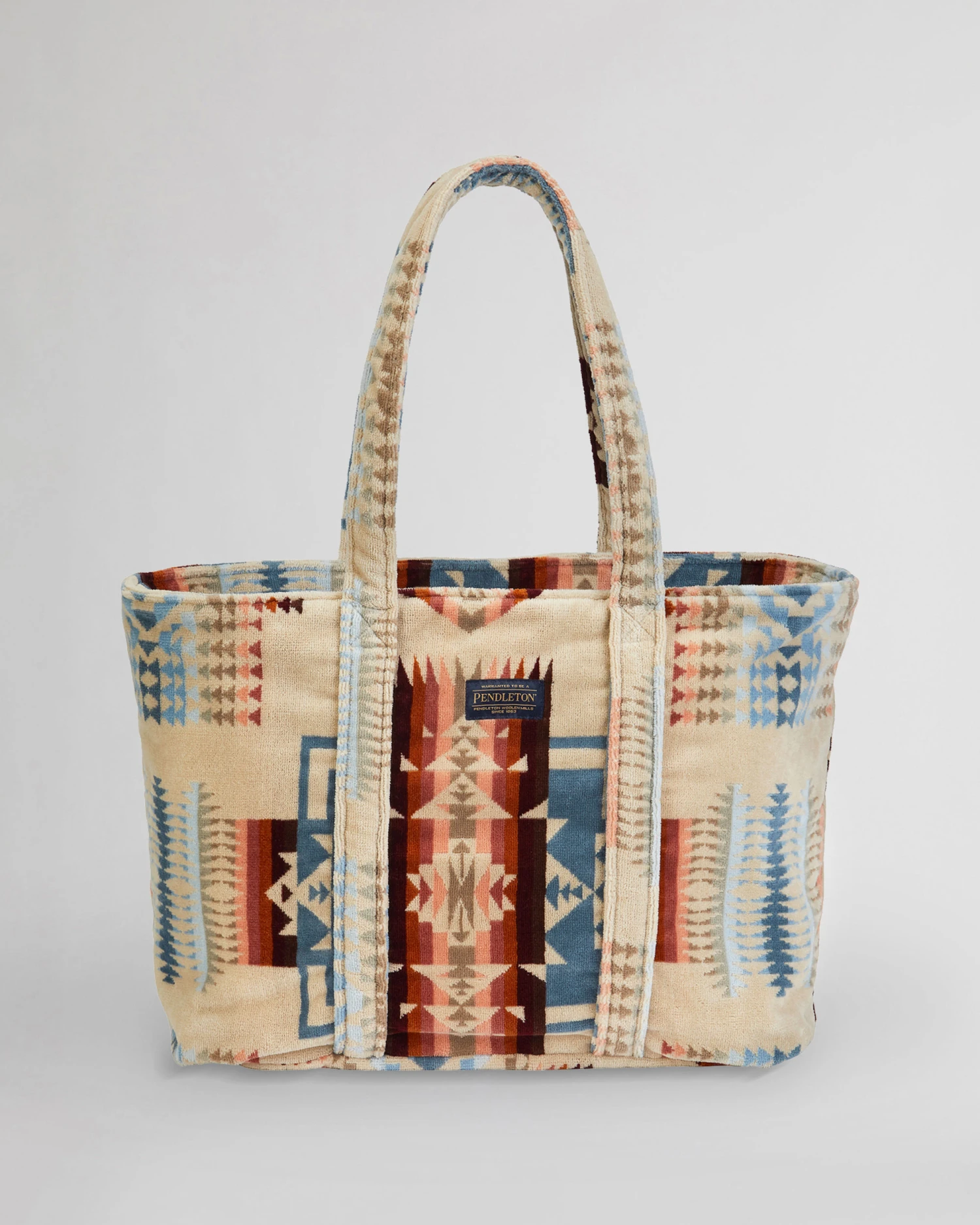 A soft-sided tote perfect for warm weather, crafted from sustainably produced cotton in a durable terry cloth weave, featuring one of our most beloved patterns. Fully lined interior with one pocket. Tie top. Pattern placement may vary.