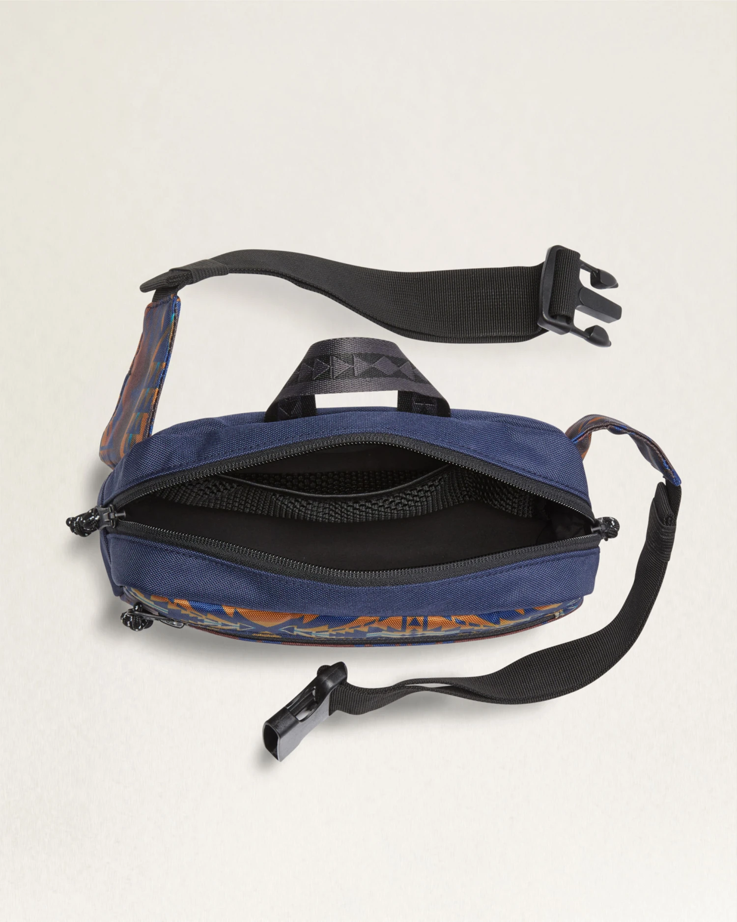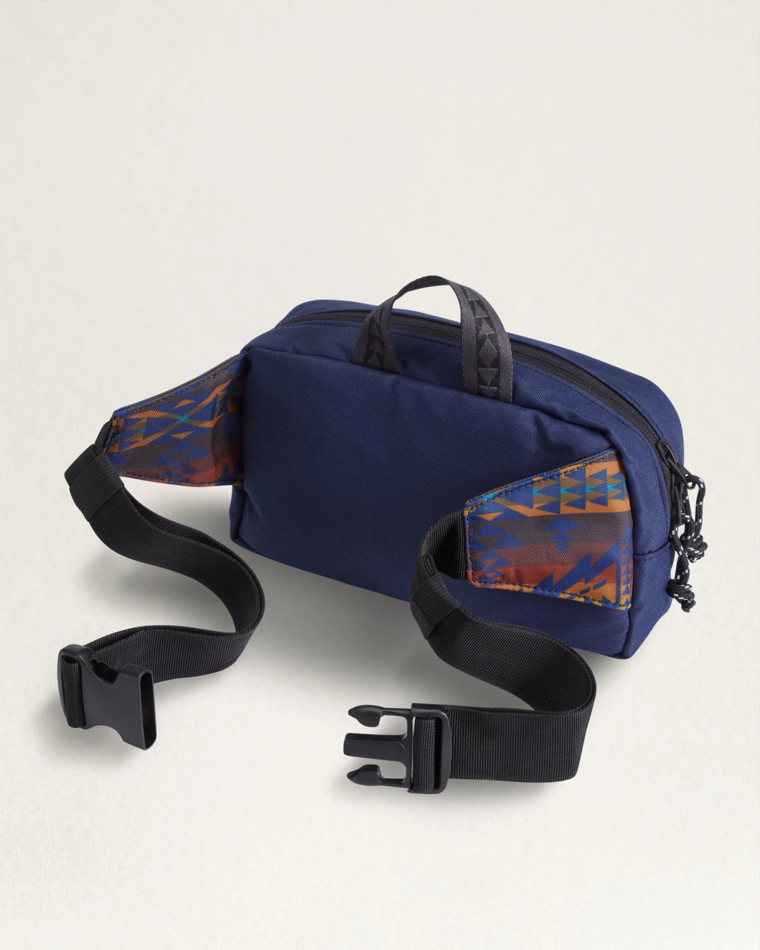 The perfect pack for any adventure. Features top zipper closure, front zip pocket, multiple interior pockets, top handle and adjustable waist strap with buckle closure. Pattern placement may vary.