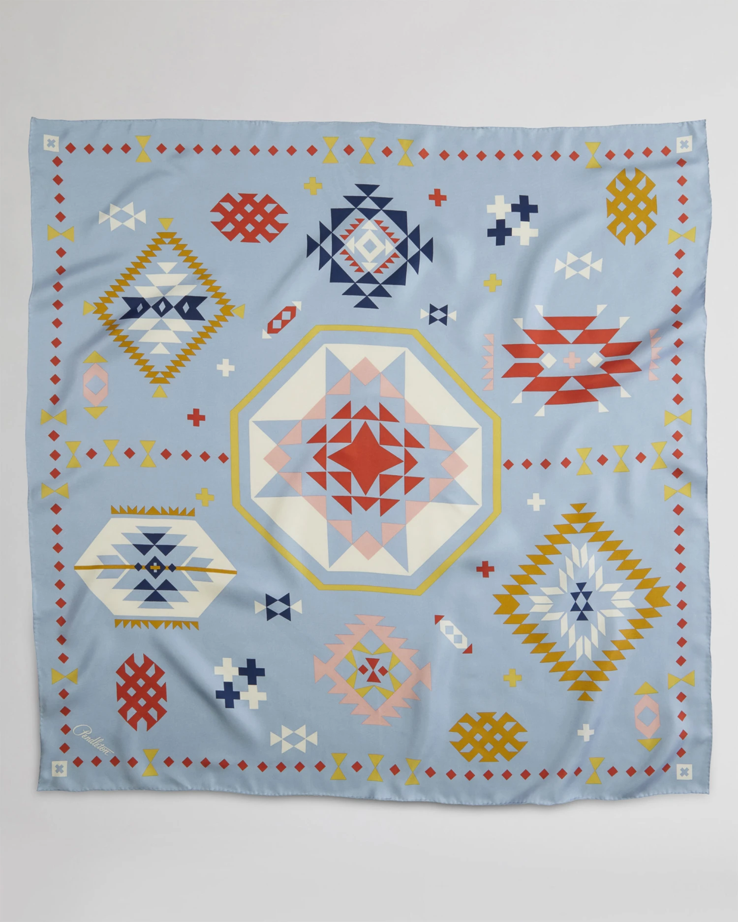 An oversized square scarf in our softest silk featuring our whimsical Wild Blossoms blue pattern.