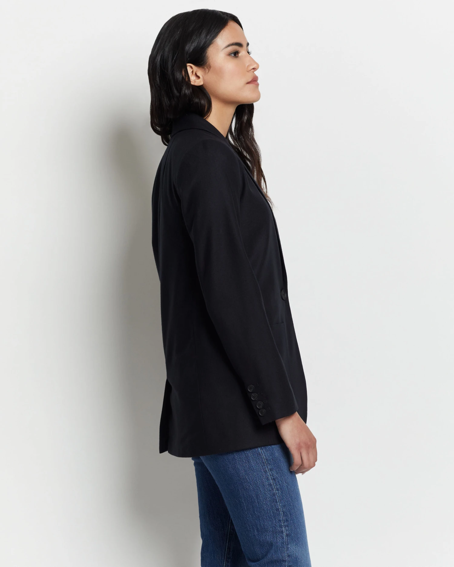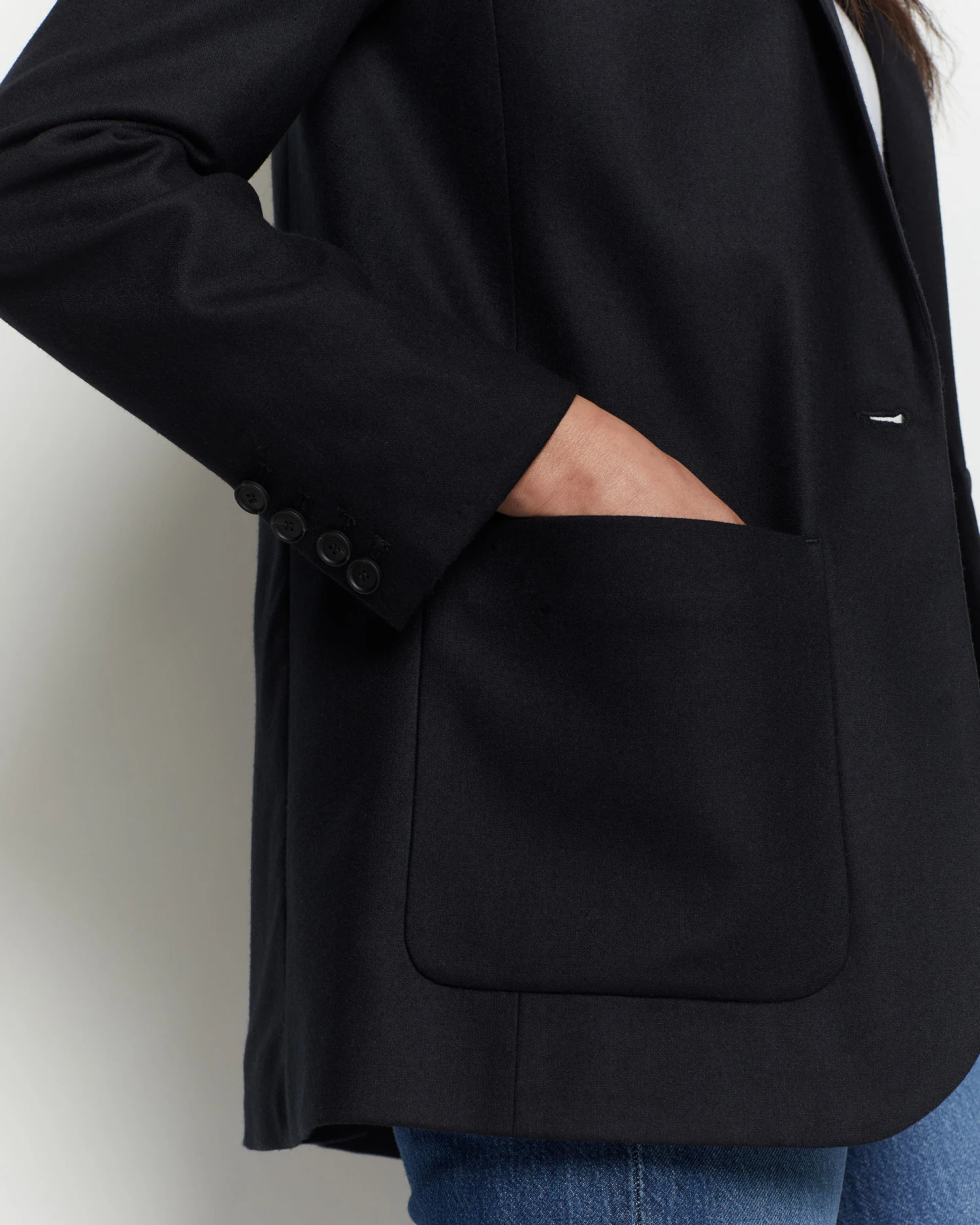 A modern take on a classic silhouette, crafted from soft, breathable merino wool. Features a single button front closure and two front pockets. Lined.