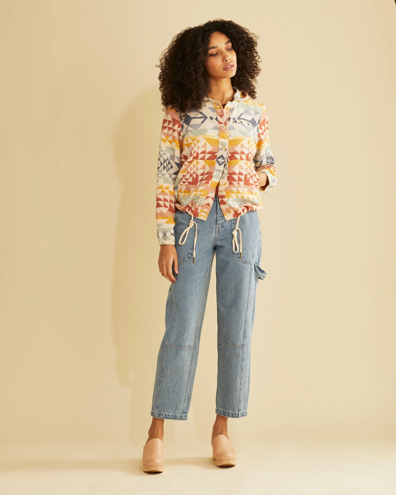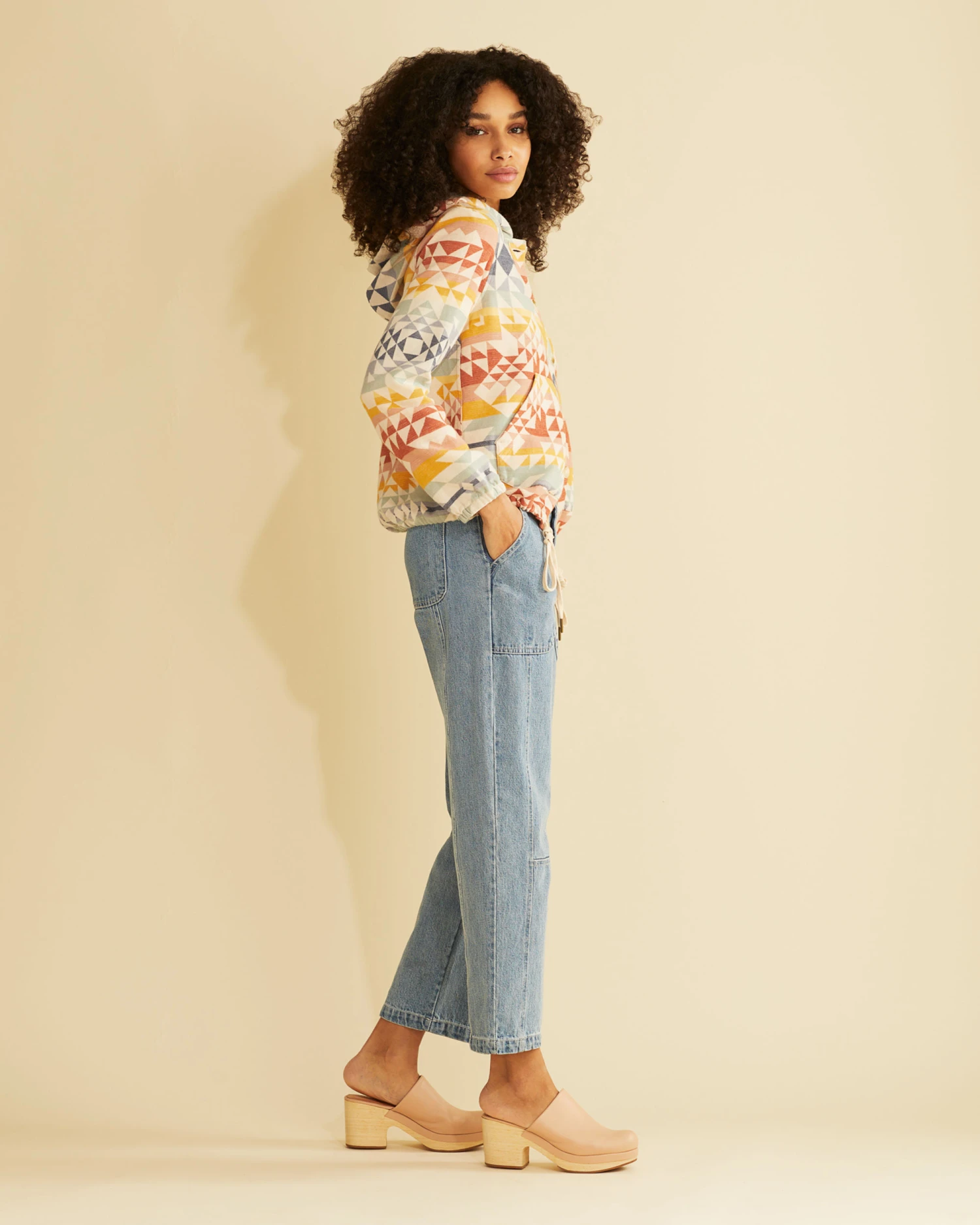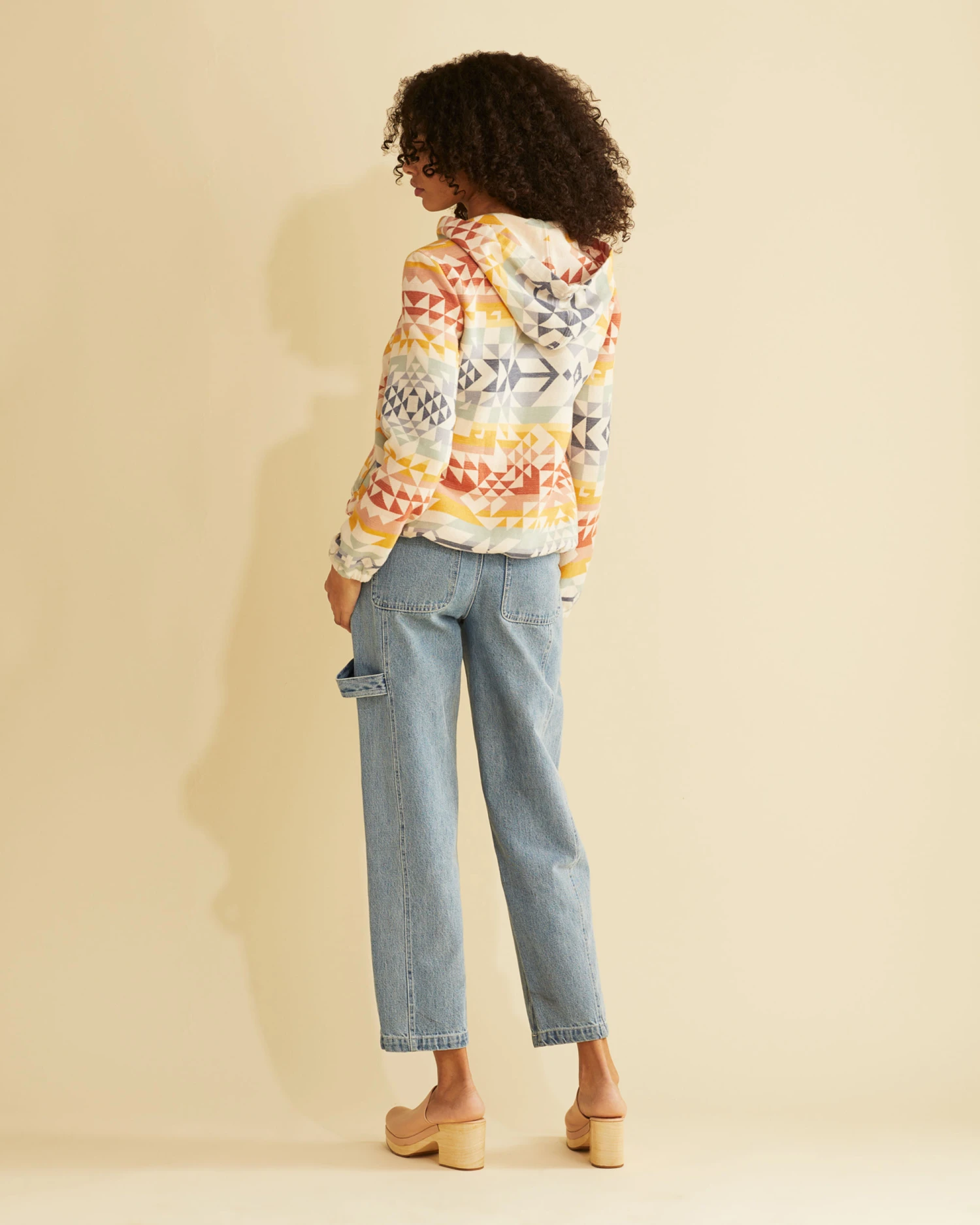 A best seller in a bright new jacquard pattern, crafted from our lightest weight cotton chamois that’s brushed on both sides for ultimate softness. This button-front women’s hoodie has an adjustable drawstring hem, elasticized cuffs and three pockets.