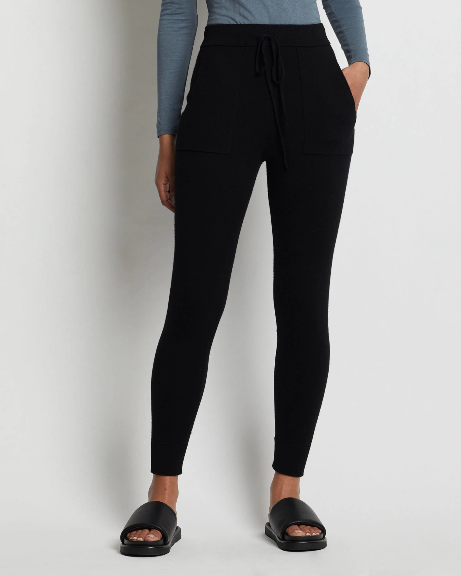The ultimate lounge pants, crafted from ultrasoft, breathable merino wool for luxurious comfort, in a lightly textured birdseye knit. Wide ribbed waist with drawstring, two pockets, ribbed cuffs, and a sporty stripe down each leg.