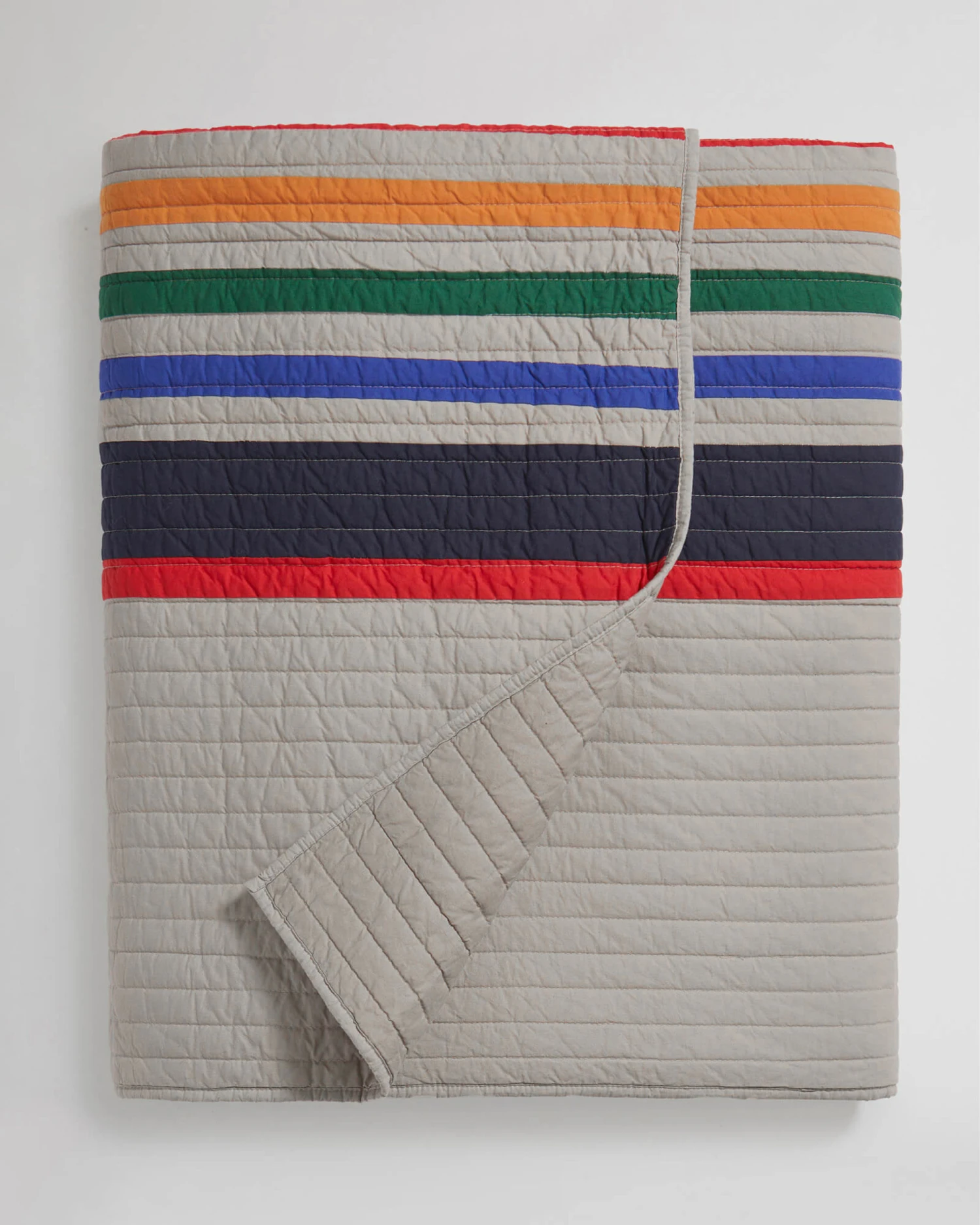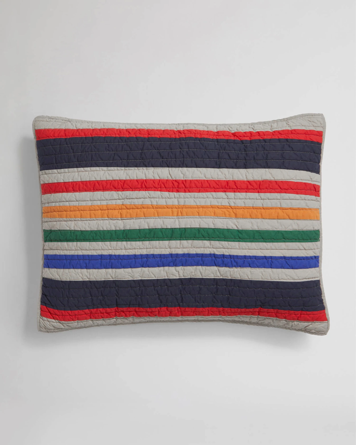 A lightly filled, pieced quilt in our updated Yellowstone pattern, designed to capture the varied colors and landscapes of our country’s oldest national park. Soft cotton percale reverses to solid color. Twin set includes one standard sham; Full/Queen has two shams. King includes two king shams.