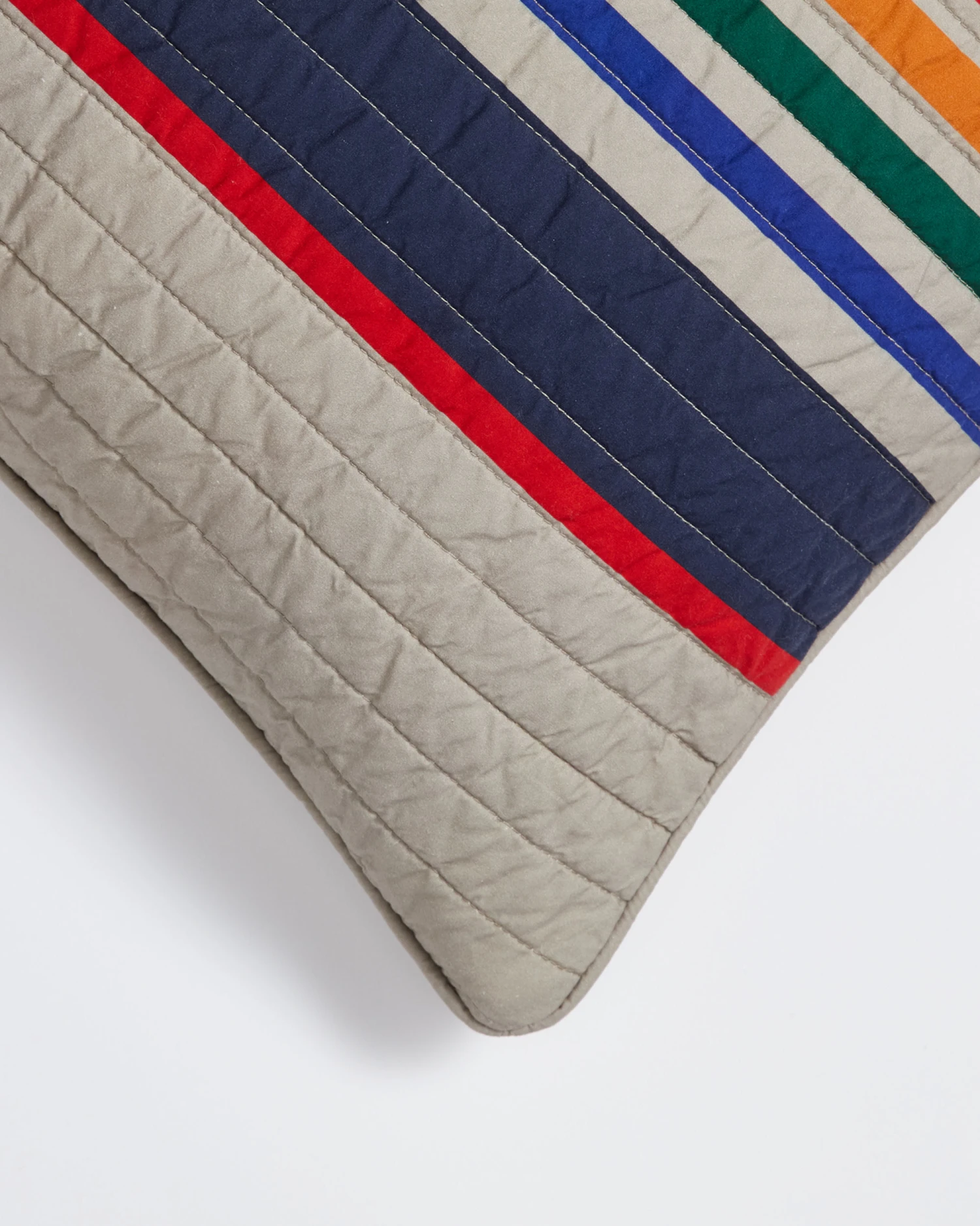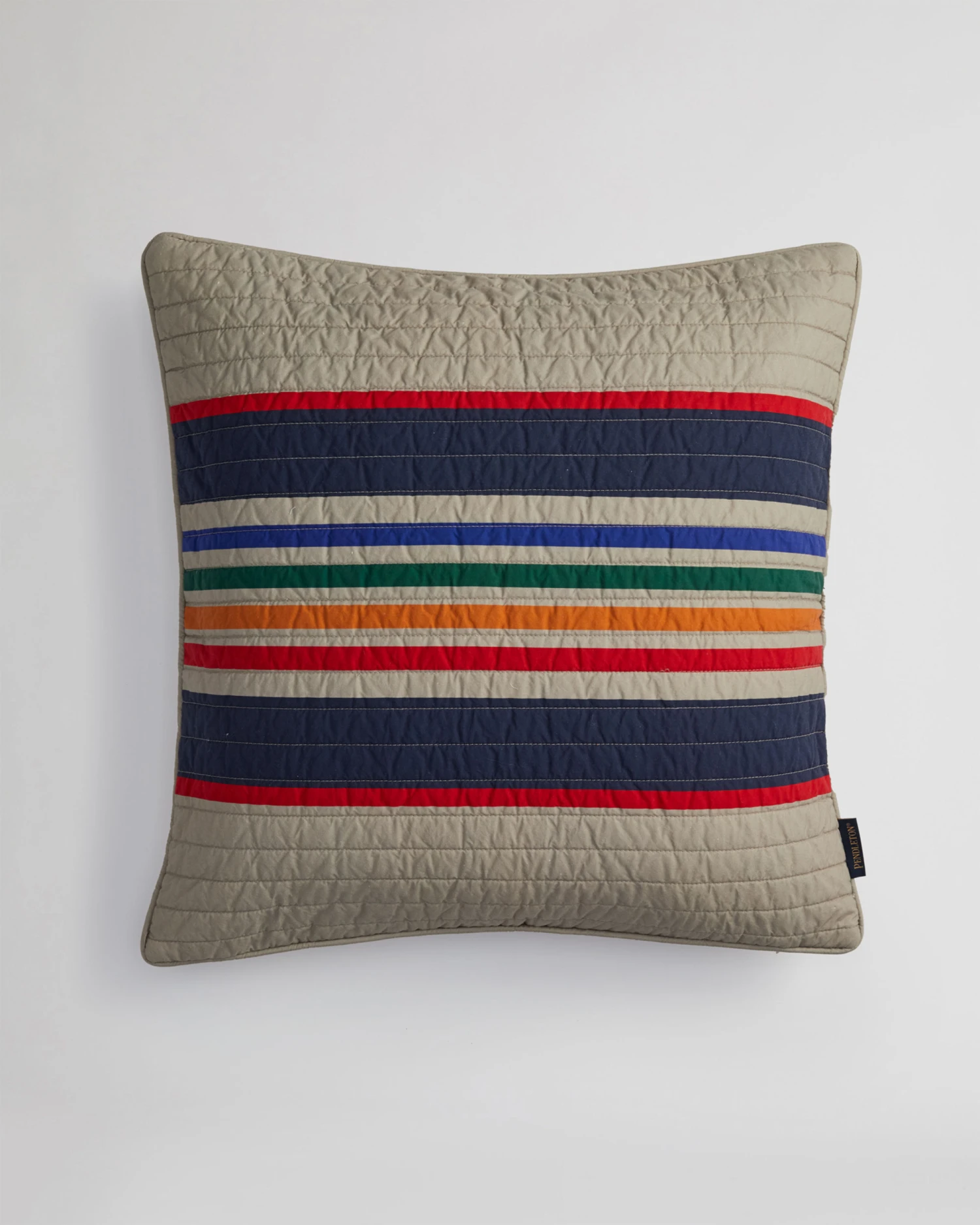 A quilted cotton pillow featuring our Yellowstone Park stripes on front, with a solid color back. Removable insert.