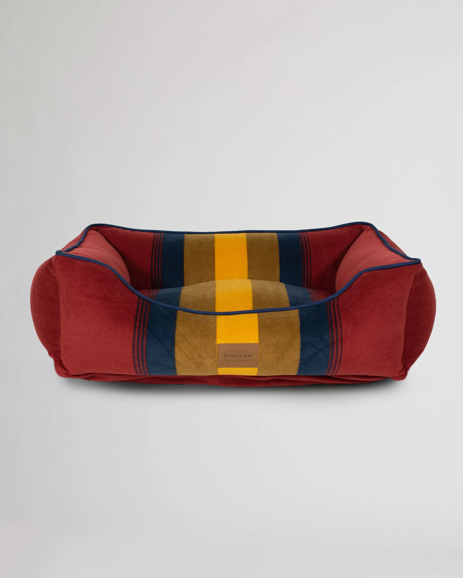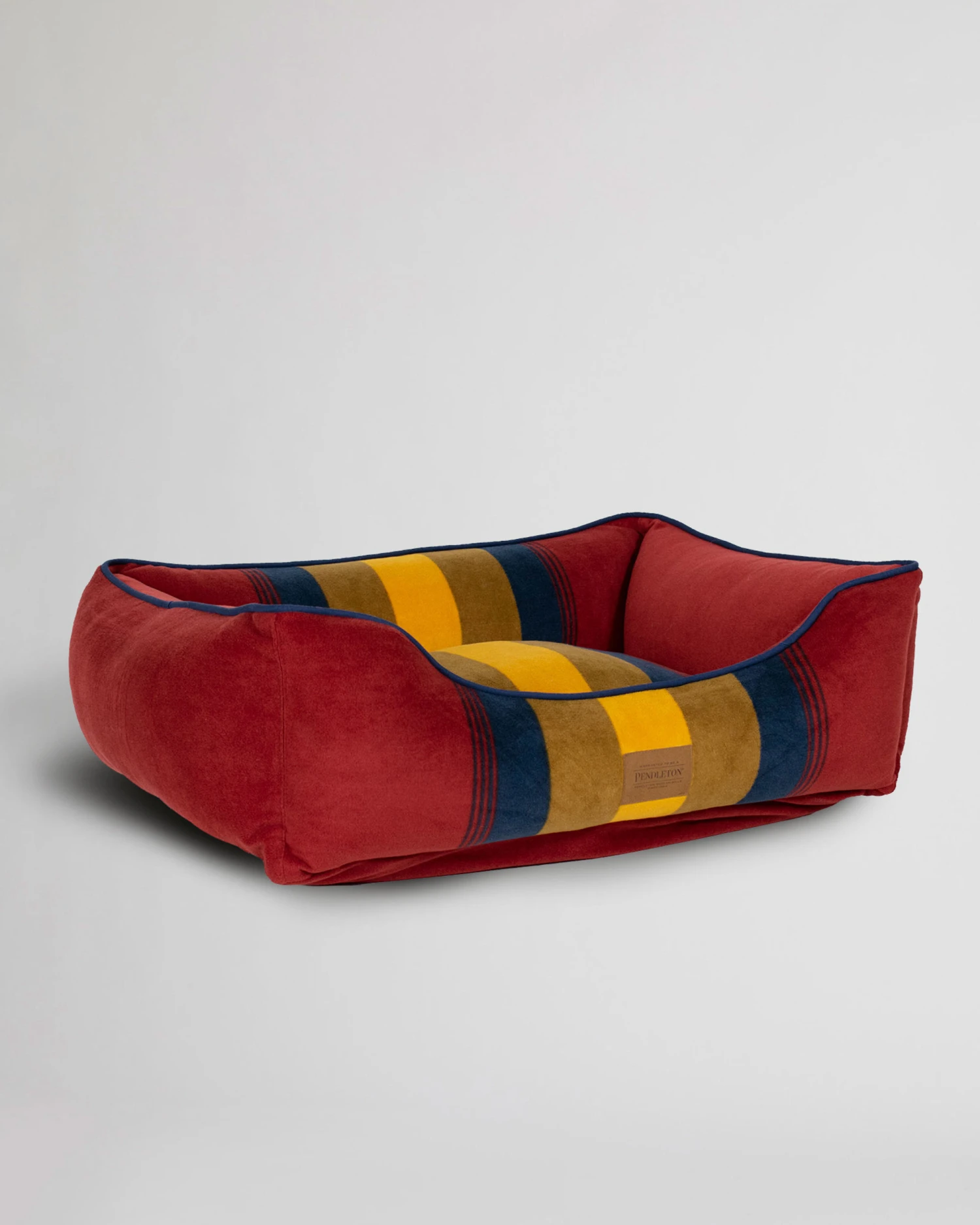 Easy step-in design with wrap-around bolster for comfort and security dogs love. Soft polyester fleece cover; high-loft memory fiber polyester fill. Cover zips off for easy machine washing.